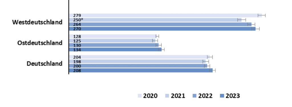 Ost-West-Gefälle: In Ostdeutschland sind Kitas im Schnitt günstiger; in Westdeutschland zahlen Eltern teils hohe Beiträge. Das prägt Nachfrage und Belegungsquoten (Haller et al., 2025).